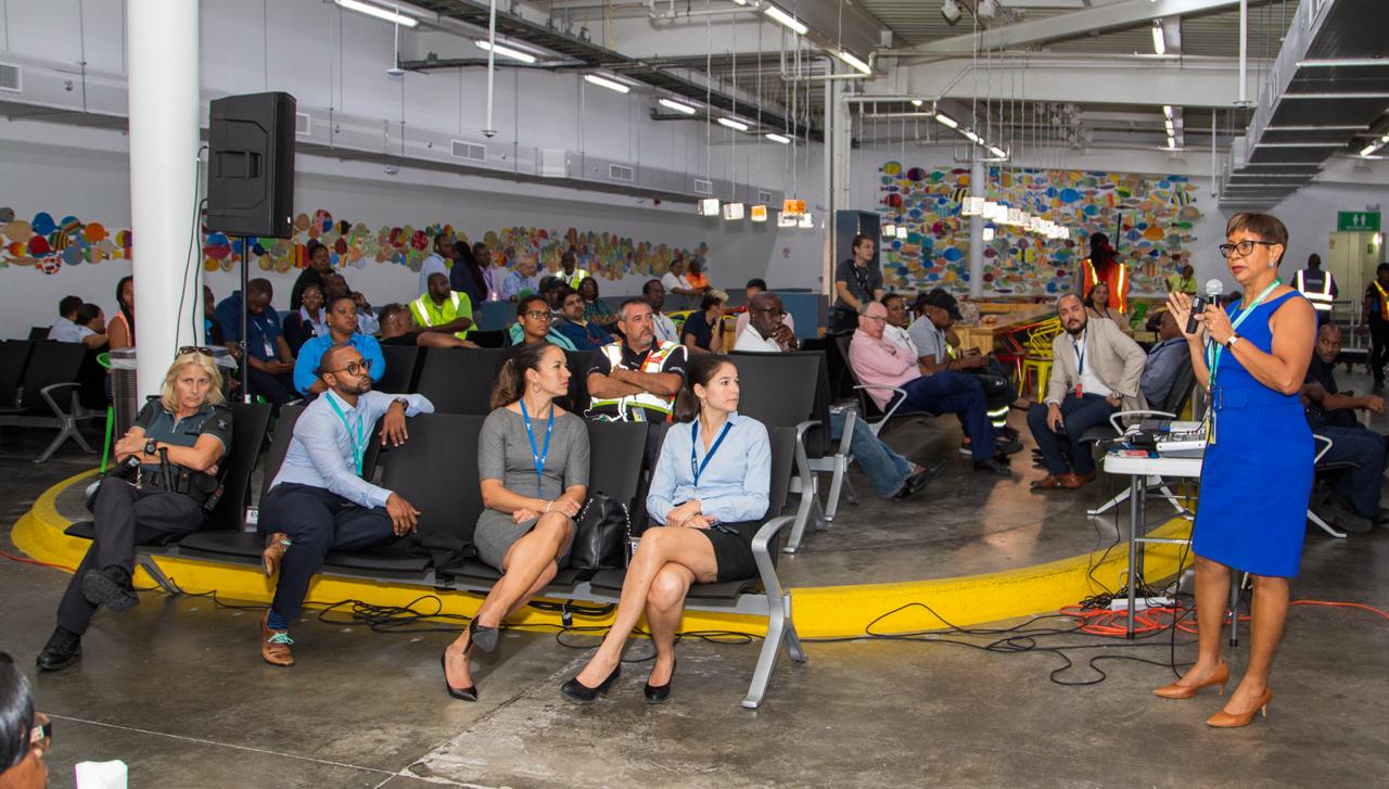 Gerald Baptiste of the SXM Airport Rescue and Firefighting Department (R&FF) and Eva Lista – De Weever, Department Head of the Collective Prevention Services (CPS) were amongst the primary speakers at the information session on the Novel Coronavirus (COVID-19), which was appropriately entitled, “Awareness and Protection” at the Princess Juliana International Airport (SXM). The open walk-in session was held with the airport community at the Departure Hall on Tuesday, March 3, 2020. The stakeholders included airlines and handlers, concessionaires, Immigration, Customs, ground handling workers, cargo operators, VIP’s, car rental operators and more.