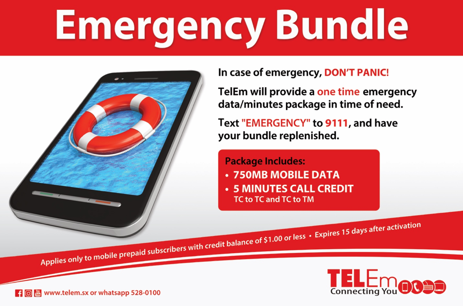 POND ISLAND, Sint Maarten – TelEm Group is launching a new 9111 Emergency Bundle plan to assist prepaid subscribers in times of emergency.