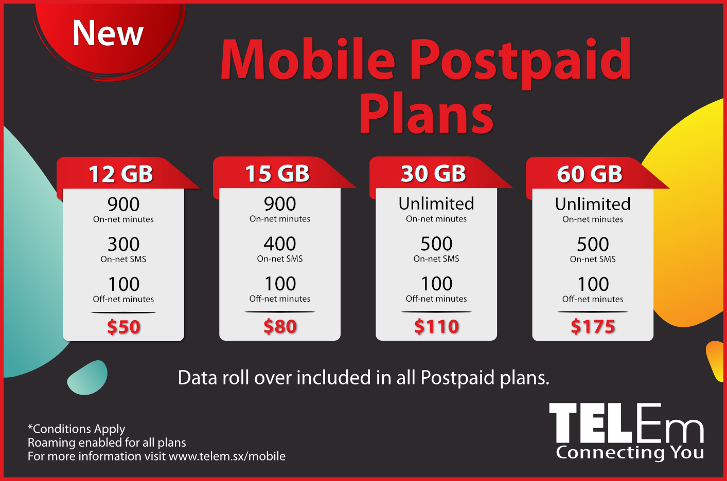 Pond Island, Sint Maarten – TelEm Group, el proveedor líder de telecomunicaciones, se complace en anunciar una importante actualización de sus planes de pospago móvil. La compañía se ha tomado el tiempo de evaluar los comentarios de los clientes y está respondiendo y ofreciendo a los suscriptores más planes centrados en datos. A partir del 1ro de abril de 2023, todos los suscriptores existentes de Smart, Los planes Smarter, Smartest y Genius recibirán automáticamente una actualización de su servicio.