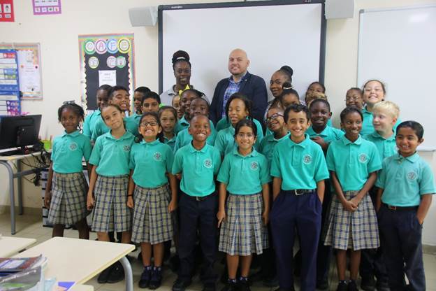 The minister of VROMI, Christopher Wever visits St. Dominic primary school