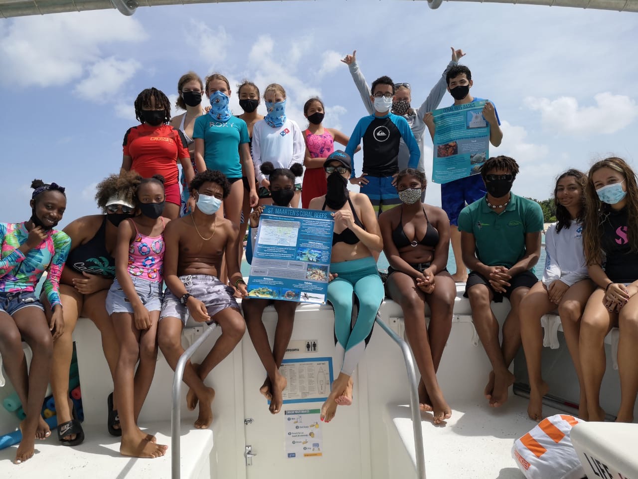 PHILIPSBURG, Sint Maarten – The Nature Foundation St. Maarten hosted the first Coral Education Snorkel for local students funded by the ‘Prins Bernhard Cultuurfonds Caribisch Gebied’ and facilitated by Aqua Mania Watersports, last Sunday November 1st. Local students learned about corals, threats to corals and the importance of these animals and ecosystems, the students had a first-hand experience to see St. Maarten corals and Marine life. The free event consisted of an educational presentation about coral reefs on board of the ‘Santino’ boat and two stops for snorkeling opportunities under the guidance of St. Maarten’s marine biologists.