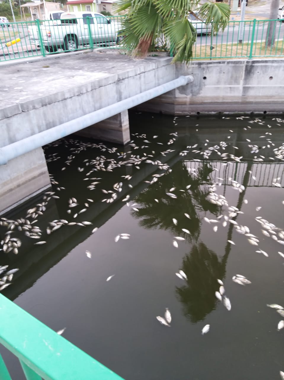 PHILIPSBURG, Sint Maarten – The Nature Foundation St. Maarten received reports of a massive fish die off in the channel between Great Salt Pond and Fresh Pond in Philipsburg. On Monday 25th of May, upon arrival at the location an estimated amount of 1000 Tilapia fish already died in the area and were floating in the channel at the Great Salt Pond. A decrease of oxygen levels in the pond water probably caused the massive fish die off.