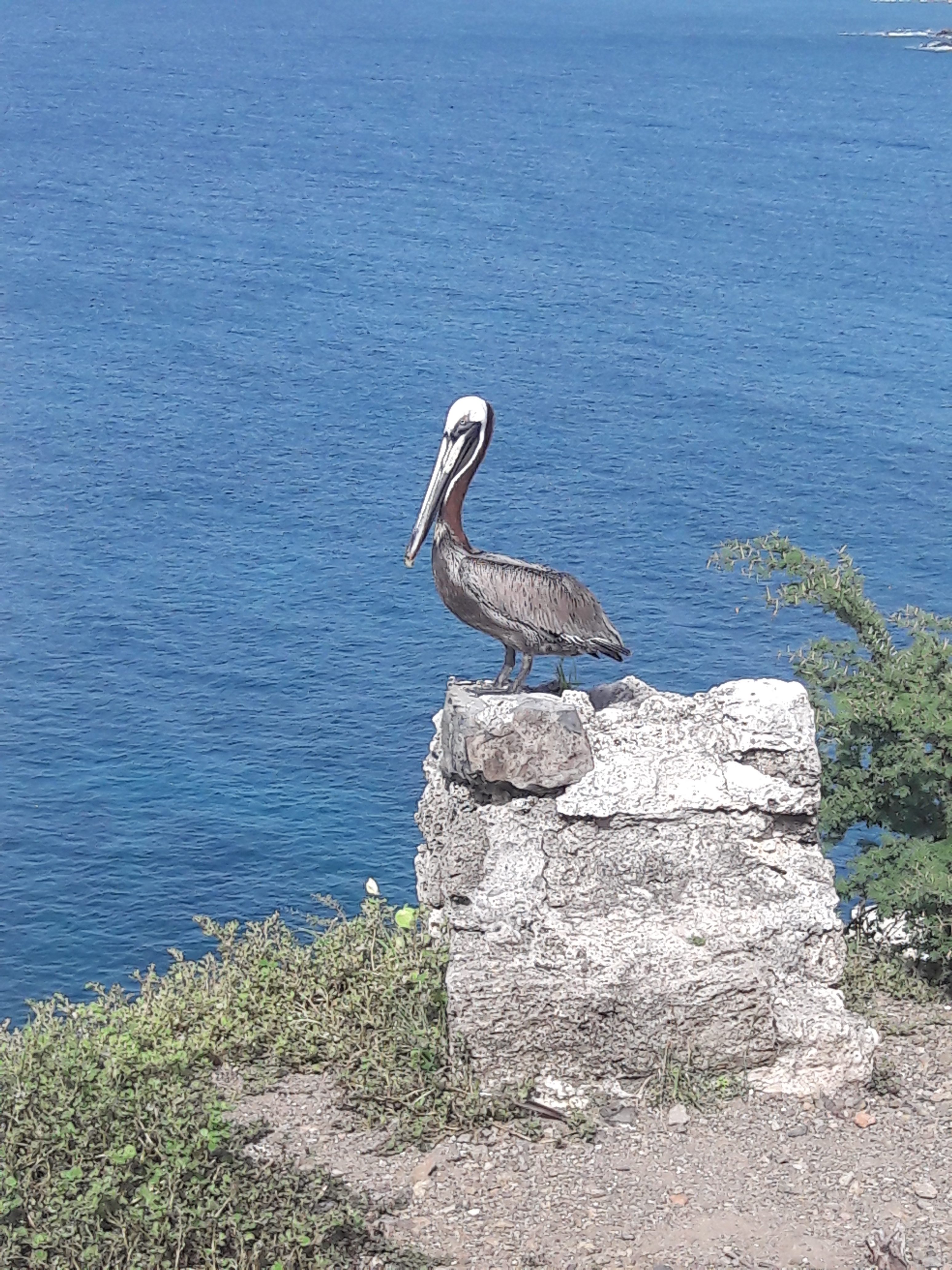 Photo caption; A beautiful brown Pelican was captured in front of the rocks of Fort Amsterdam, St Maarten, during pelican monitoring activities (photo credit Saskia Werner).