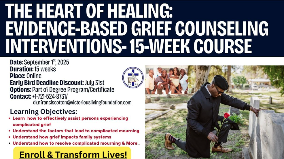 PHILIPSBURG, Sint Maarten – Cuando el mundo de alguien se derrumba, ¿tienes las habilidades para ayudarlo de verdad a sanar? Con solo cuatro días restantes para la fecha límite de inscripción anticipada, profesionales y personas que se preocupan por el duelo tienen un plazo limitado para obtener capacitación especializada en consejería para el duelo que transforme la forma en que apoyan a otros en los momentos más difíciles de la vida.