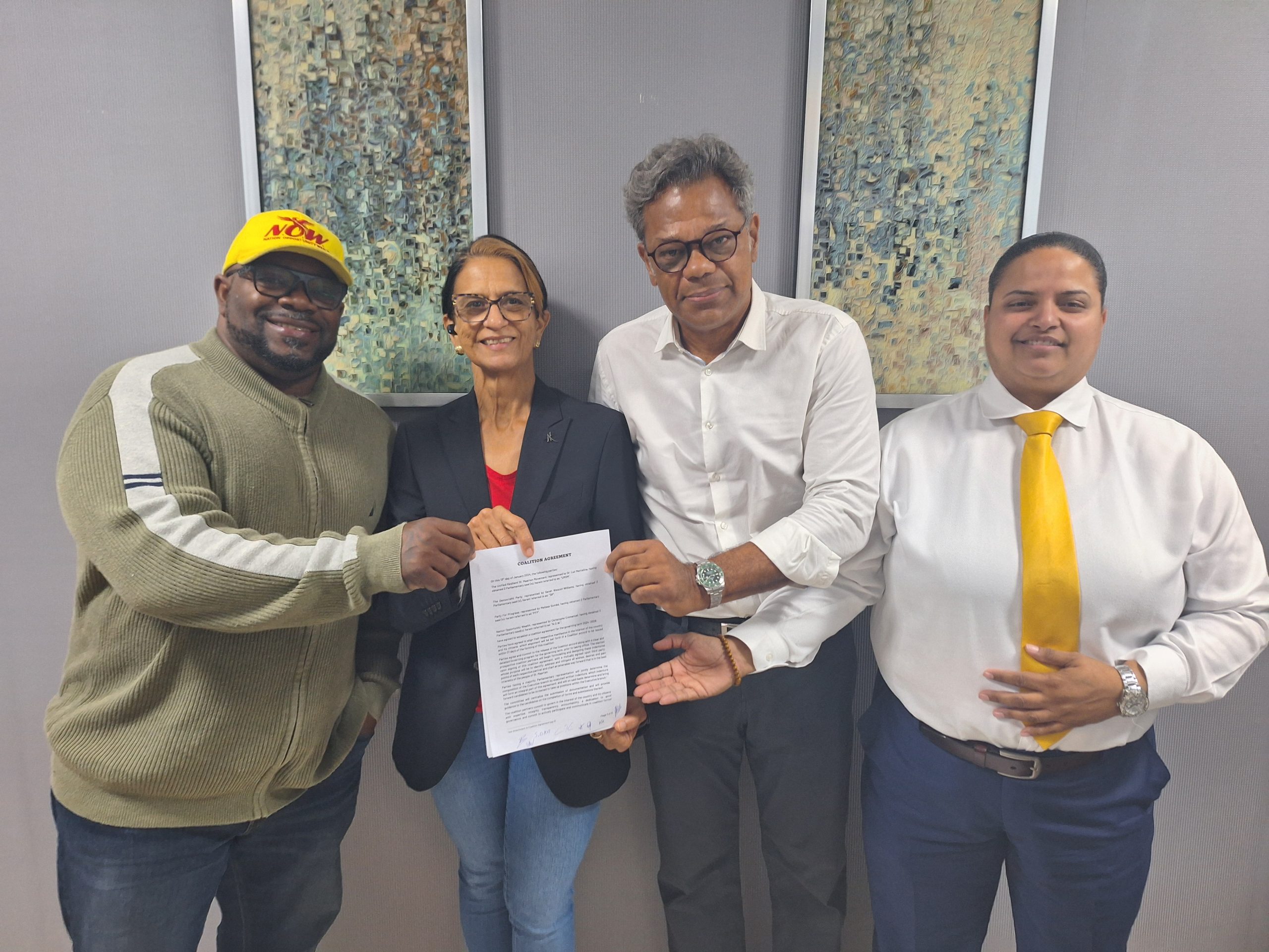 PHILIPSBURG, Sint Maarten – En un momento histórico para el pueblo de St. Maarten, Unified Resilient St. Maarten Movement (URSM), Democratic Party (DP), Party for Progress (PFP) y Nation Opportunity Wealth (N.O.W.) firmaron oficialmente una coalición histórica el sábado por la noche, marcando el comienzo de una nueva era de gobernanza colaborativa.