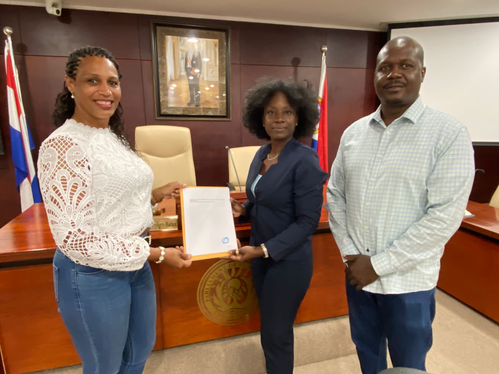 PHILIPSBURG, Sint Maarten – El viernes 11 de marzo de 2022, la líder del Partido United St. Maarten Sra. Pamela Gordon Carty acompañada por el presidente del partido, el Sr. Cecil Nicholas les presentaron a la presidenta del parlamento y diputada Grisha Heyliger-Marten unas propuestas de enmiendas para fortalecer las leyes sobre abuso sexual infantil.