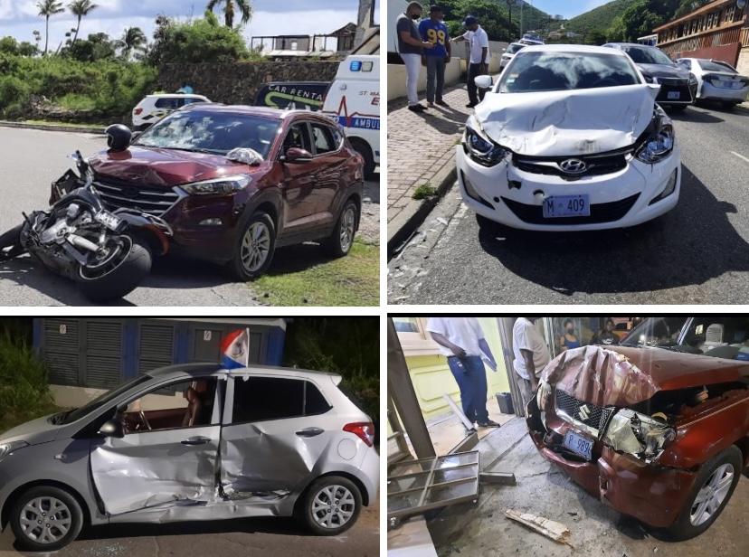 PHILIPSBURG, Sint Maarten – The St. Maarten Police Traffic Department had to handle several vehicle accidents over the last weeks in which individuals suffered minor injuries or extensive damages were done to the vehicles.