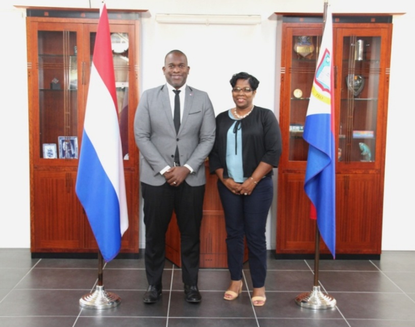 HARBOUR VIEW, Sint Maarten – Su Excelencia el Gobernador de Sint Maarten, Ajamu Baly, recibió recientemente a la Sra. Sharon Cangieter, directora nacional del Equipo de Olimpiadas Especiales de Sint Maarten en el Gabinete del Gobernador. Durante esta reunión, la Sra. Cangieter proporcionó al Gobernador información sobre las Olimpiadas Especiales y el equipo nacional de Sint Maarten.
