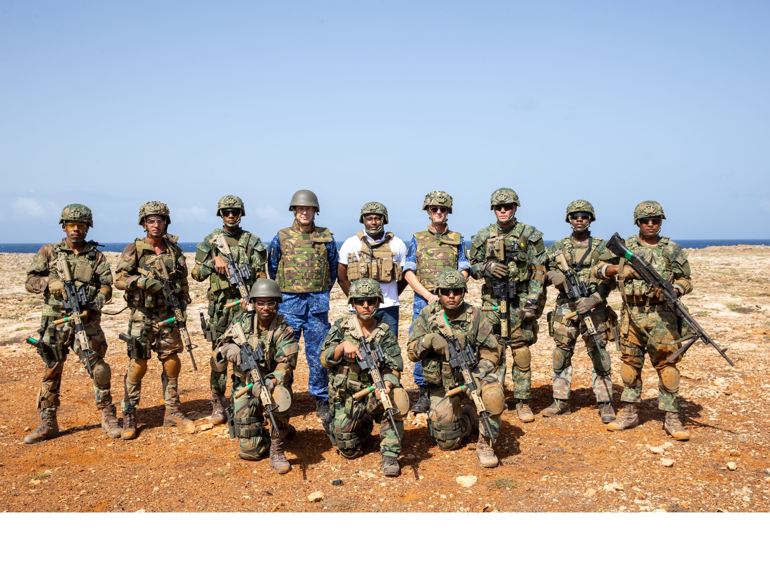 Por la tarde el Ministro se trasladó en un helicóptero de la Guardia Costera al polígono de Wacao. Fue recibido aquí por el comandante del ejército de Curaçao, capitán Sicni Meulens. El programa implicó una presentación de las operaciones militares actuales y los programas de entrenamiento, que tienen como objetivo garantizar la seguridad y la estabilidad en la región. El Ministro asistió a un ejercicio militar y tuvo la oportunidad de hablar con los soldados sobre su experiencia y los desafíos que encuentran en su trabajo. El Ministro subrayó en su discurso la importancia de la cooperación entre los distintos servicios de seguridad. También expresó su agradecimiento al Ejército de Curaçao y subrayó la importancia de una mayor profesionalización del Ejército de Curaçao.