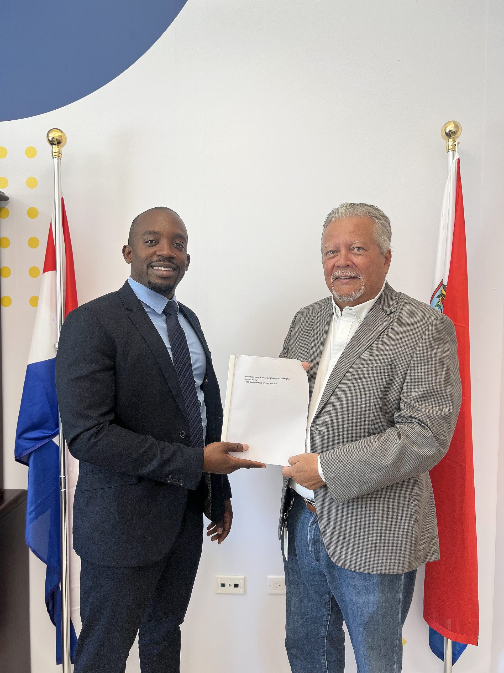 Simpson Bay, Sint Maarten – Por duodécimo año consecutivo, el Presidente del Consejo de Supervisión de WINAIR, el Sr. Georges Greaux Jr. tuvo el placer de presentar los informes financieros auditados de WINAIR para el año fiscal 2022 al Ministro de Finanzas.