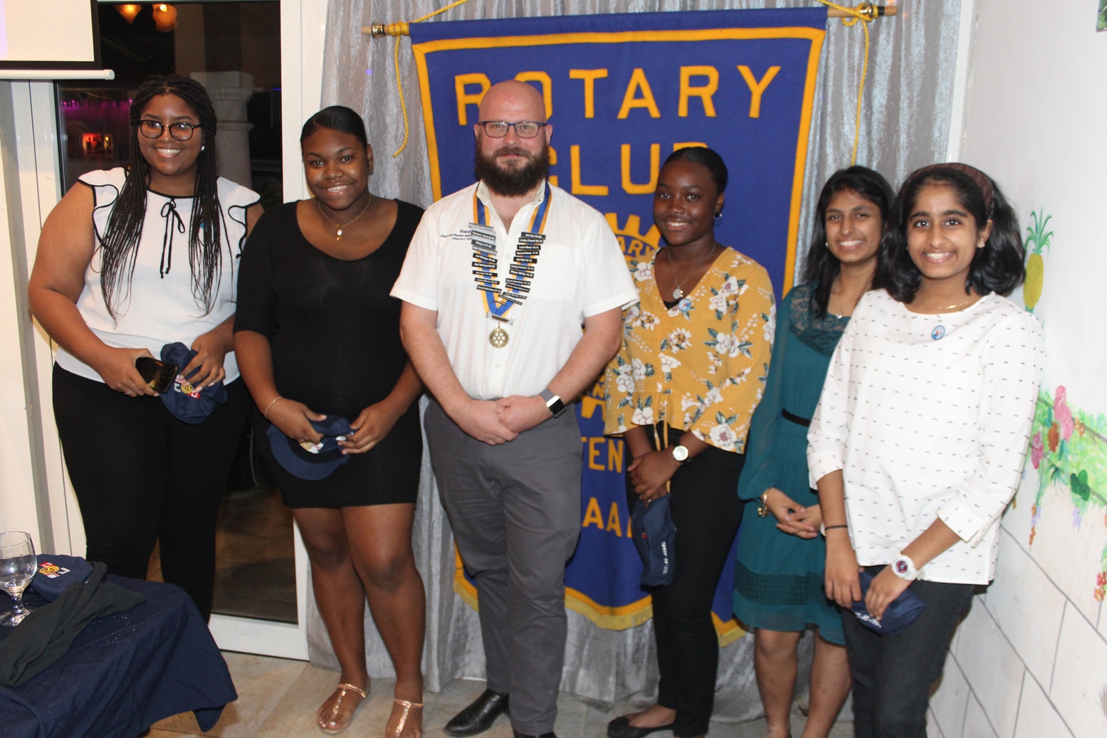 To celebrate World Interact Week, the Rotary Club of St. Maarten-Mid Isle hosted members of the Interact Club of St. Dominic High School and Charlotte Brookson Academy at their weekly dinner meeting on Tuesday November 5th. Present were, from the St. Dominic High School Interact Club, President Chanae Davis, Vice President Saheli Kirpalani and Sergeant at Arms Diya Chatani and from the Charlotte Brookson Academy Interact Club were President K’Maya Lake, Ma Lyesha Cannegieter and Jamelia Smith.