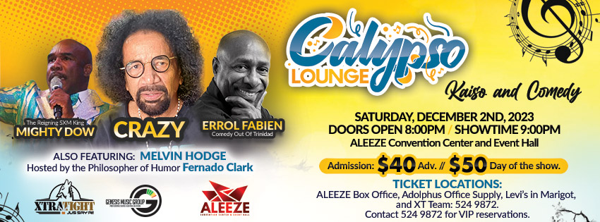 Madame Estate, Sint Maarten – prepárese para la mejor experiencia de Kaiso y Comedia cuando Xtratight Entertainment presente Calypso Lounge el sábado 2 de diciembre de 2023 en el Centro de Convenciones ALEEZE de 8:00pm a 1:00am.